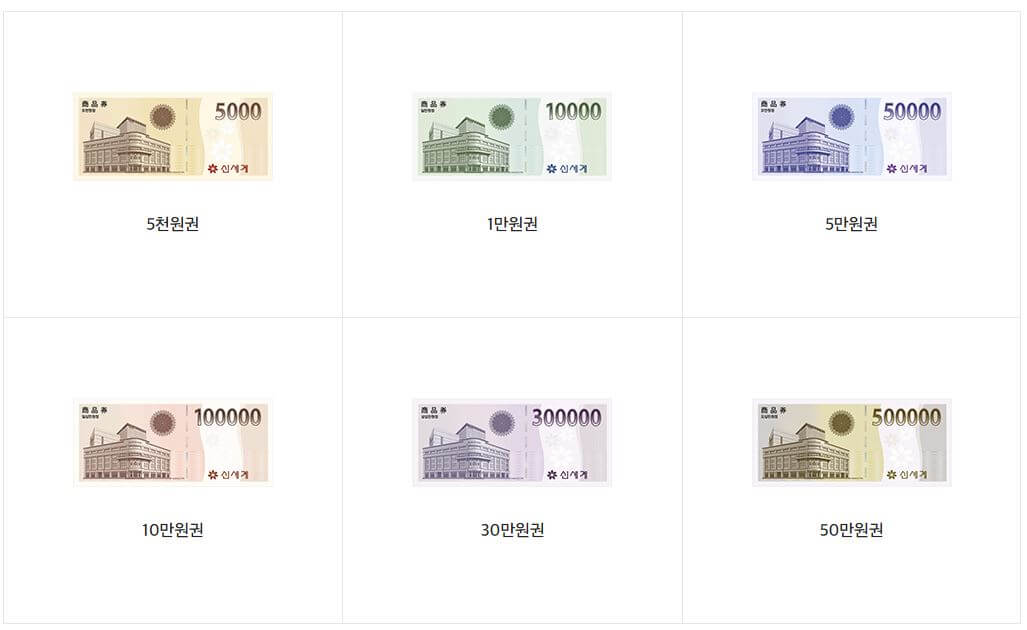 신세계상품권은 5천원, 1만원, 5만원, 10만원, 30만원, 50만원권이 있으니 종류와 상황에 맞게 선택하여서 구매하시면 됩니다.