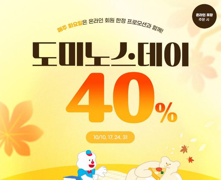 도미노피자 40% 할인 쿠폰 받기>