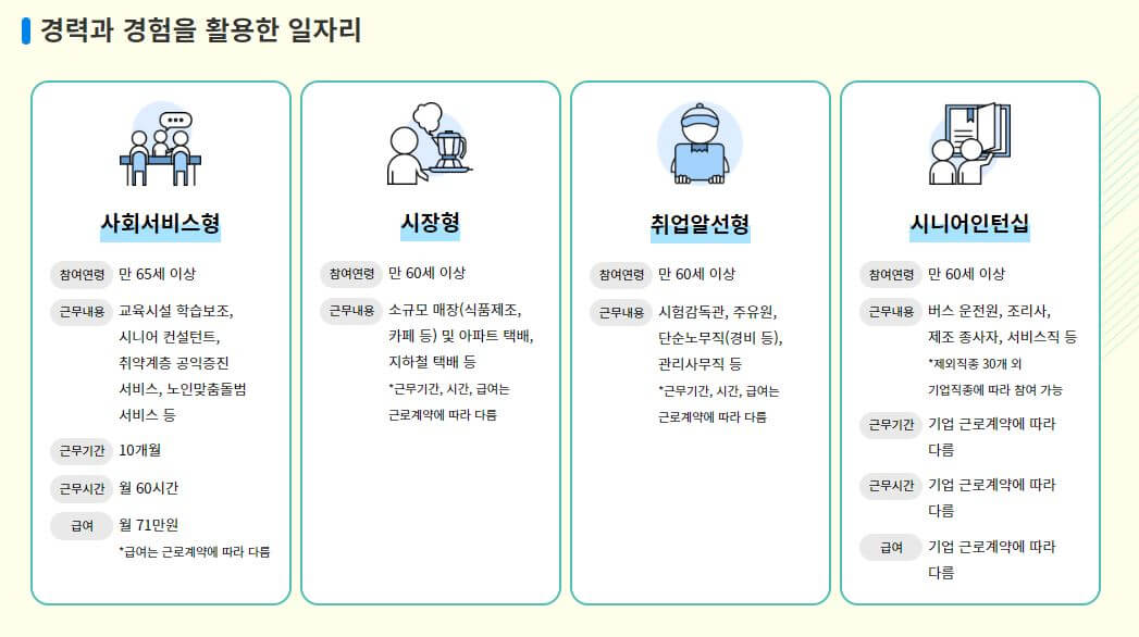 시장형 : 만 60세 이상, 소규모 매장 근무 가능